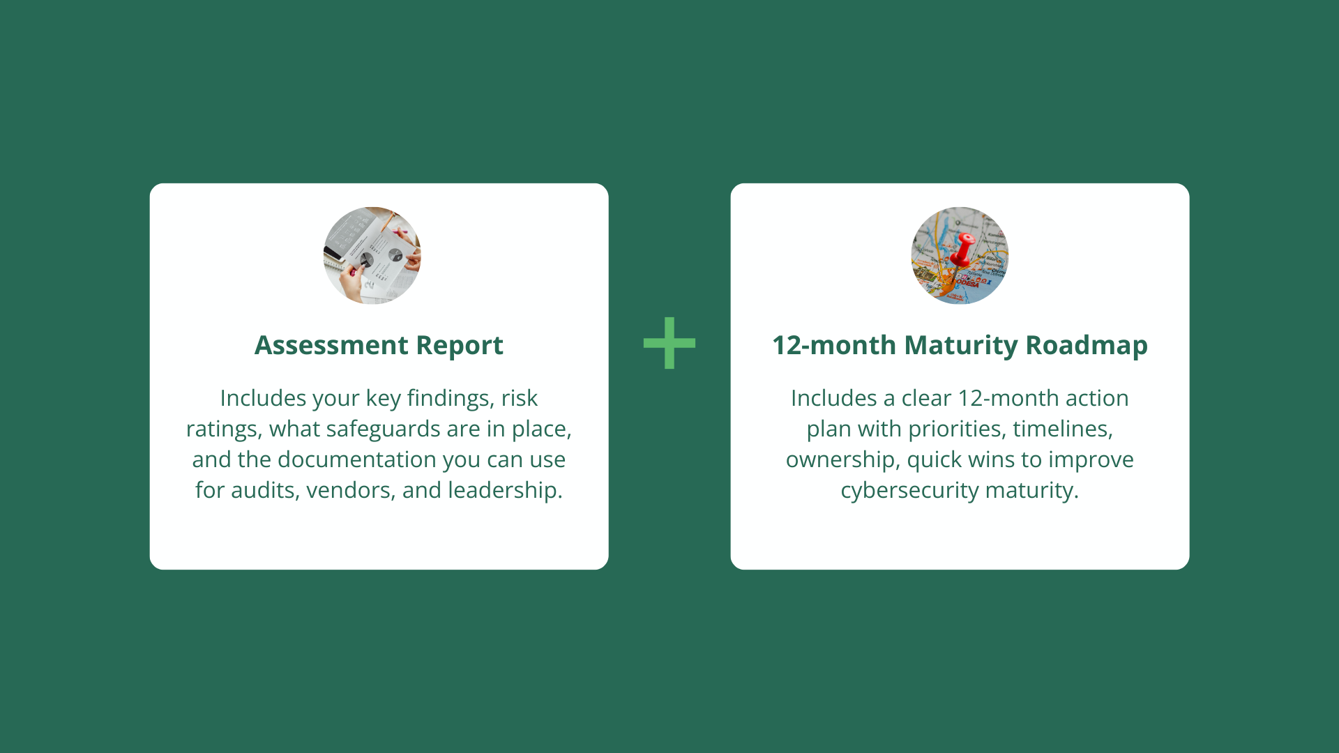 Deliver assessment reports and 12-month maturity roadmap.
